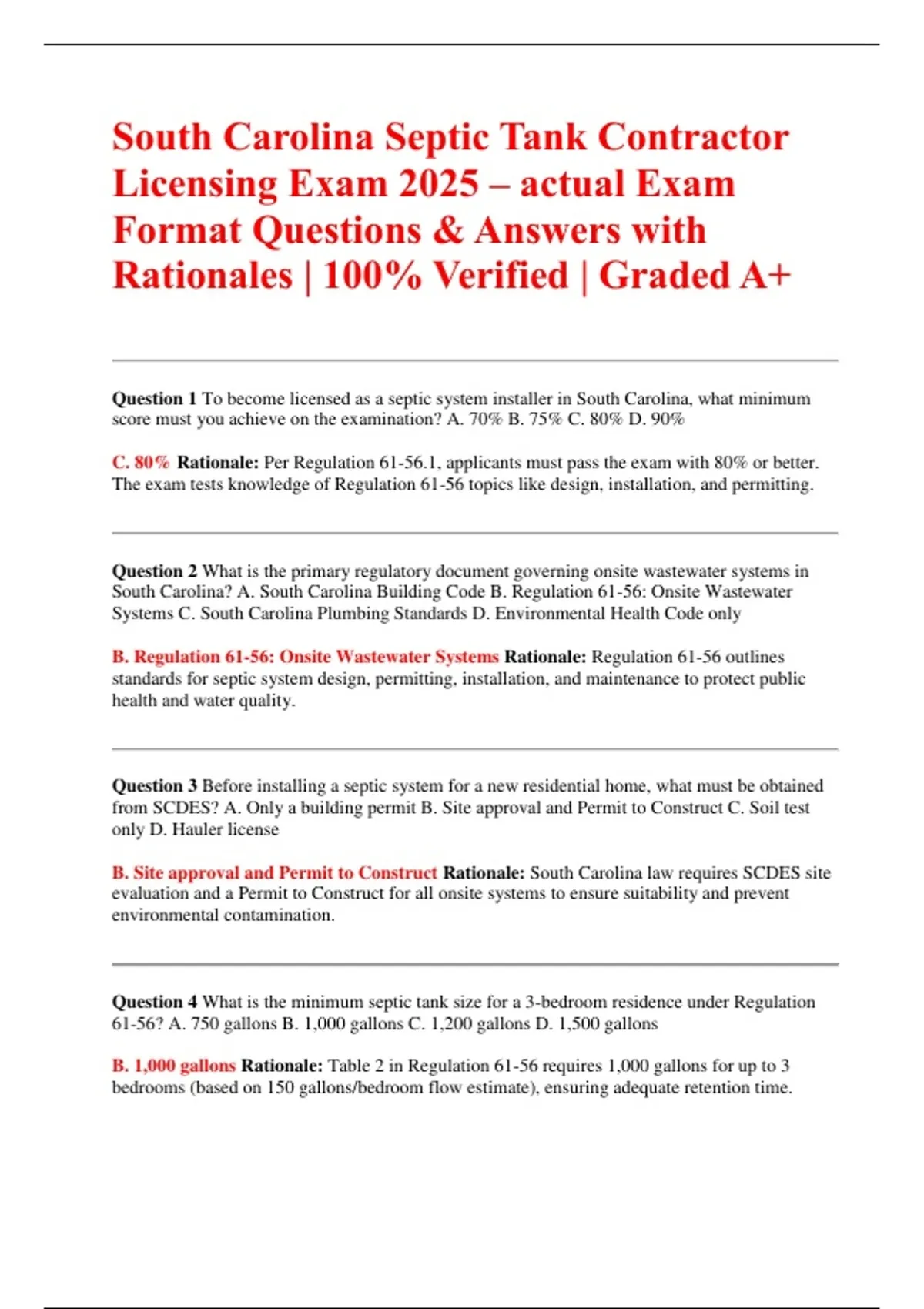 Question 1 To become licensed as a septic system installer in South Carolina, what minimum