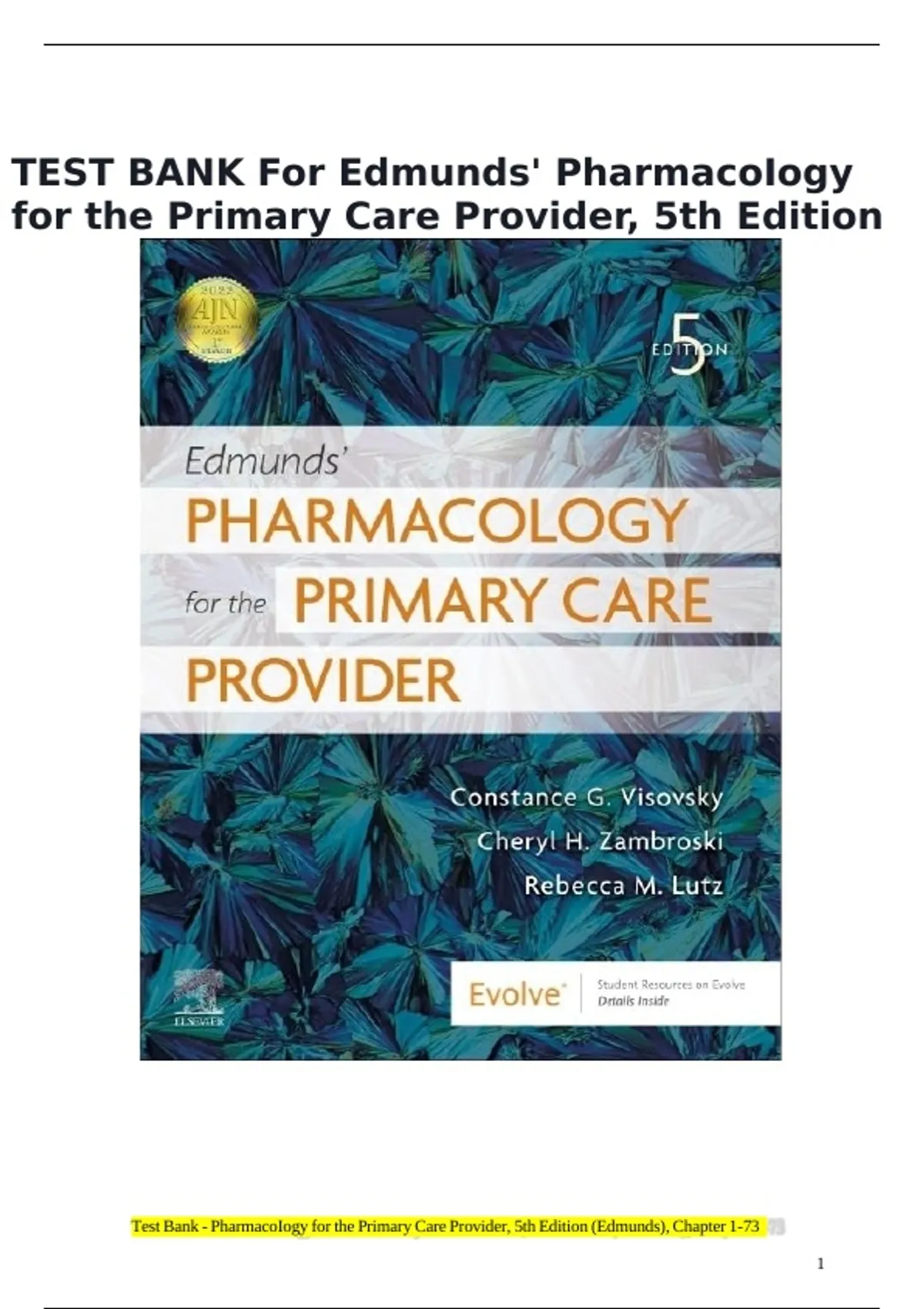 TestJBankJ-JPharmacoIogyJforJtheJPrimaryJCareJProvider,J5thJEditionJ(Edmunds),JChapterJ1-73