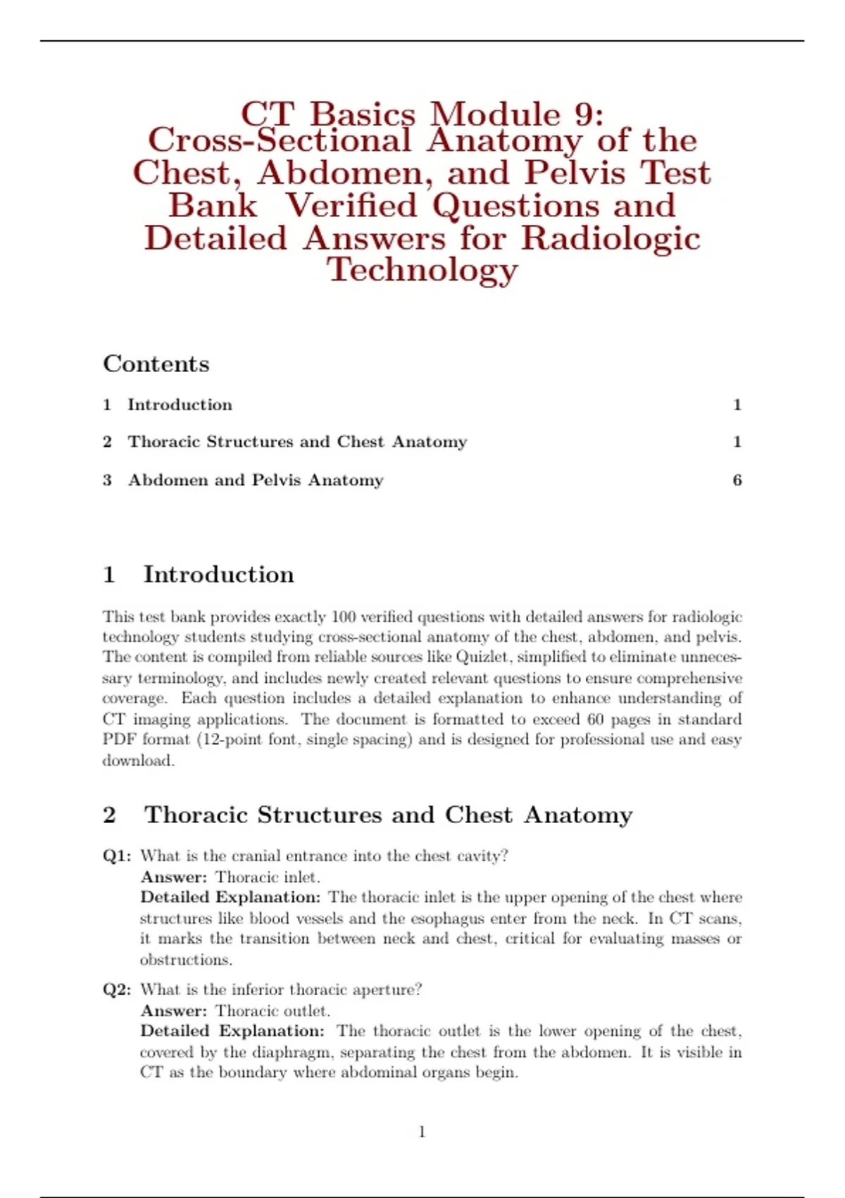 This test bank provides exactly 100 verified questions with detailed answers for radiologic