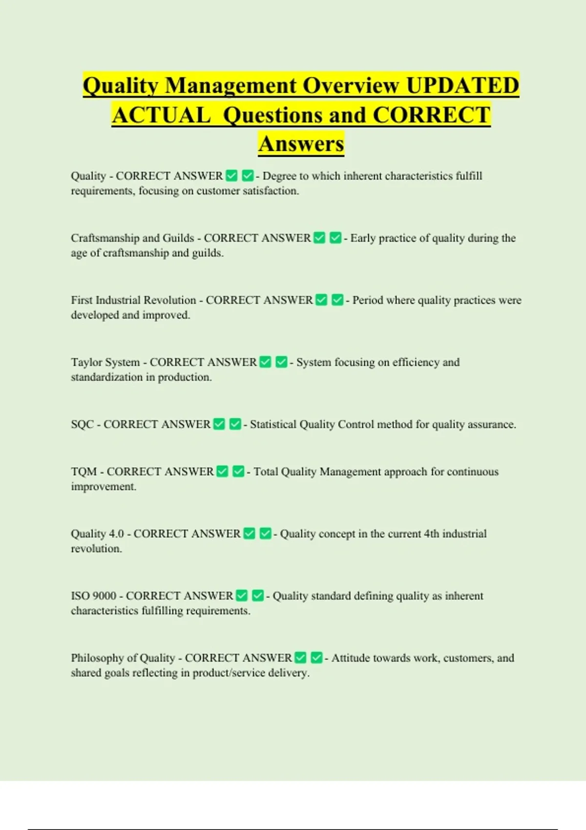 ISO 9000 - CORRECT ANSWER - Quality standard defining quality as inherent