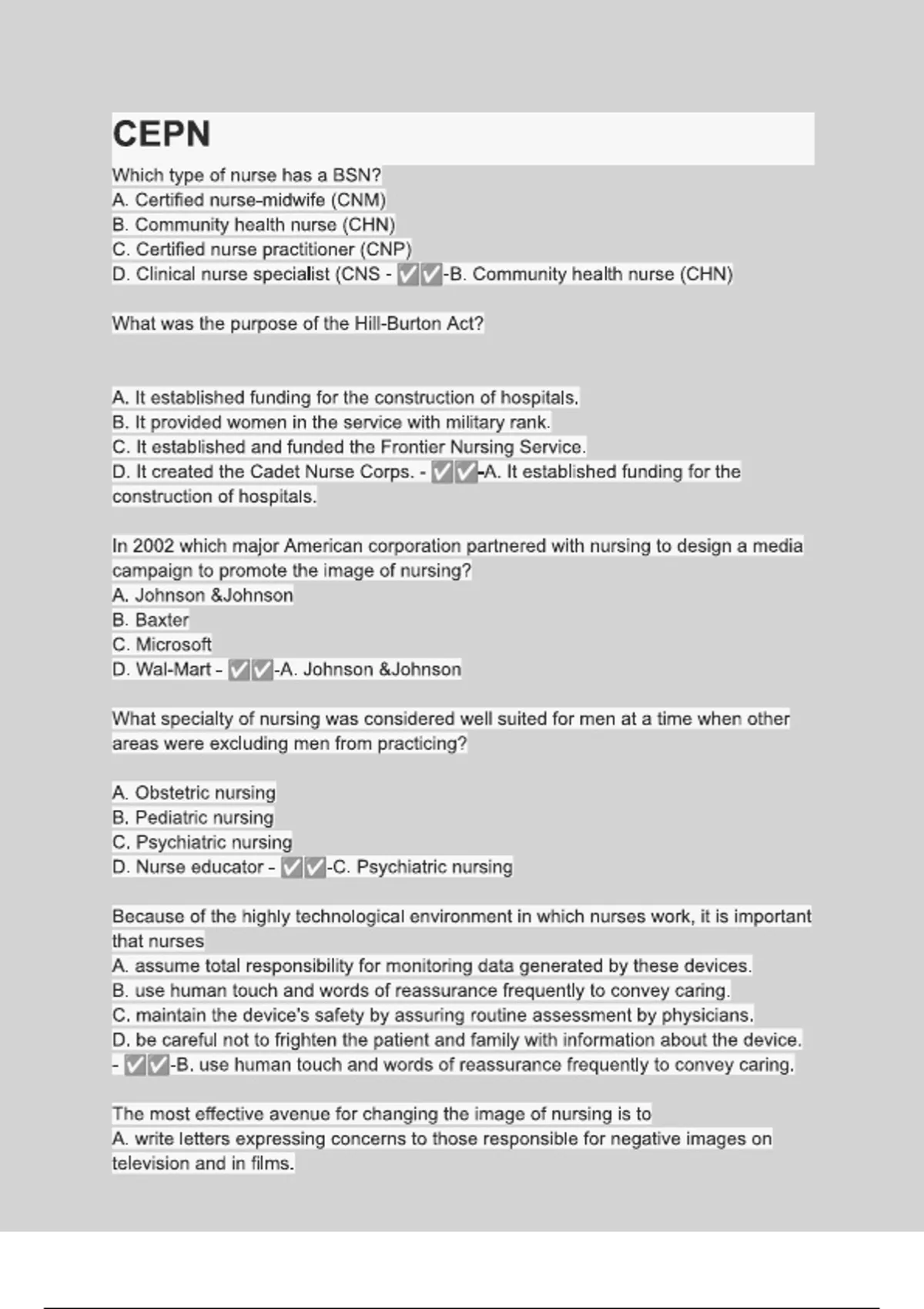 CEPN- Questions with Explanations of Answers Latest Update 2024