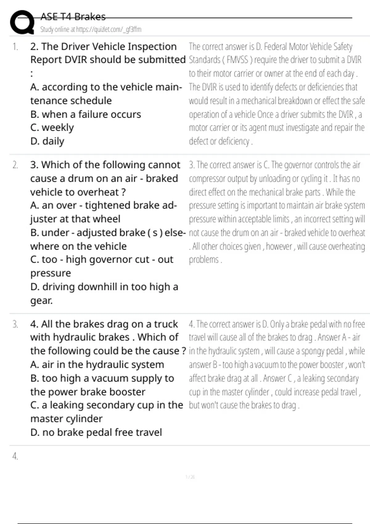 3. 4. All the brakes drag on a truck 4. The correct answer is D. Only a brake pedal with no free
