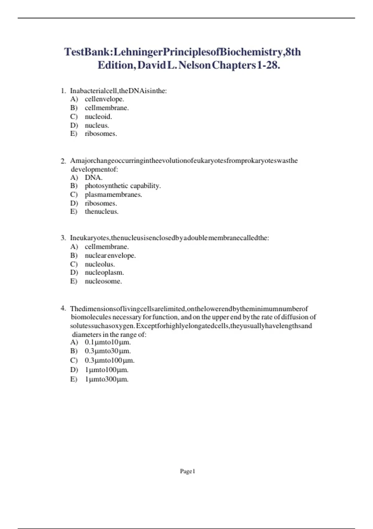 Test Bank - Lehninger Principles of Biochemistry, 8th Edition (Nelson) Chapter 1-28 | All Chapters Test Bank - Lehninger Principles of Biochemistry, 8th Edition (Nelson) Chapter 1-28 | All Chapters Test Bank - Lehninger Principles of Biochemistry, 8th Edition (Nelson) Chapter 1-28 | All Chapters