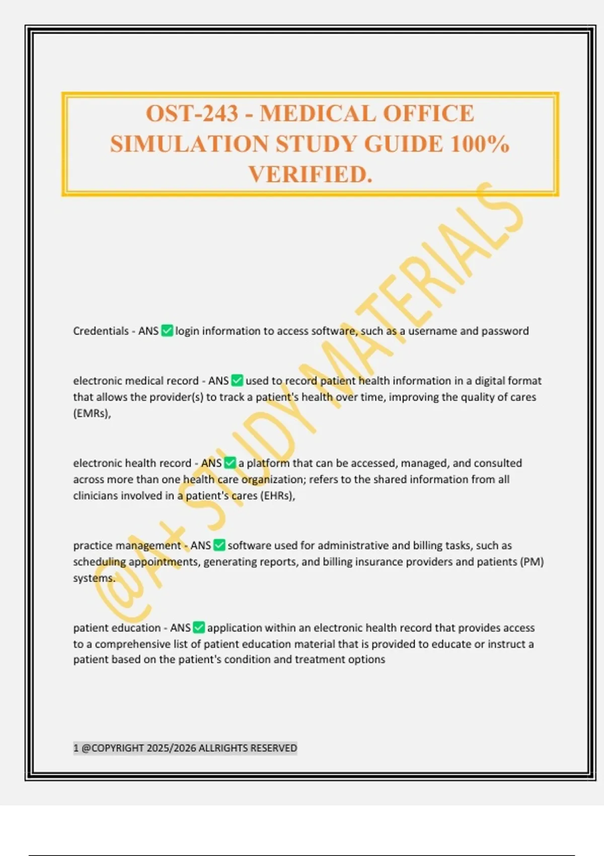 OST-243 - MEDICAL OFFICE SIMULATION STUDY GUIDE 100% VERIFIED.