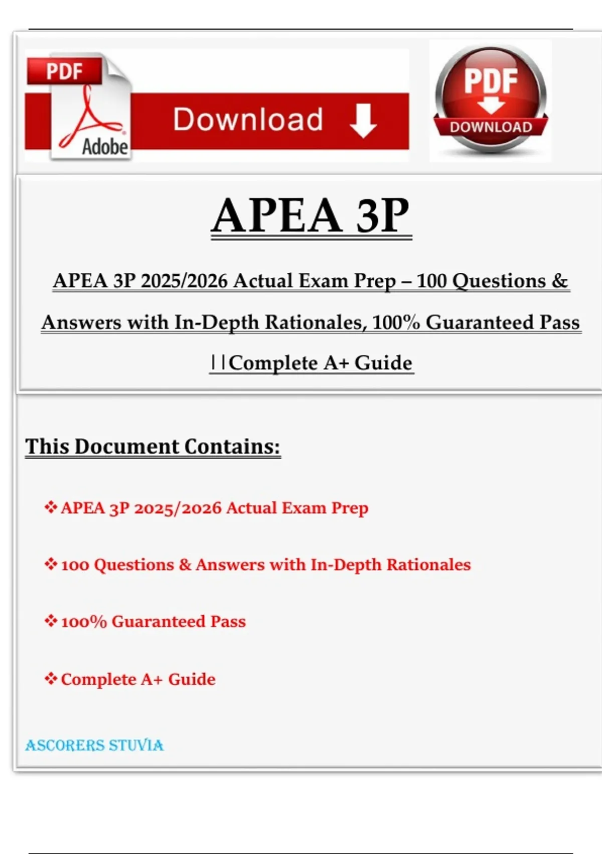 APEA 3P 2025/2026 Actual Exam Prep – 100 Questions &