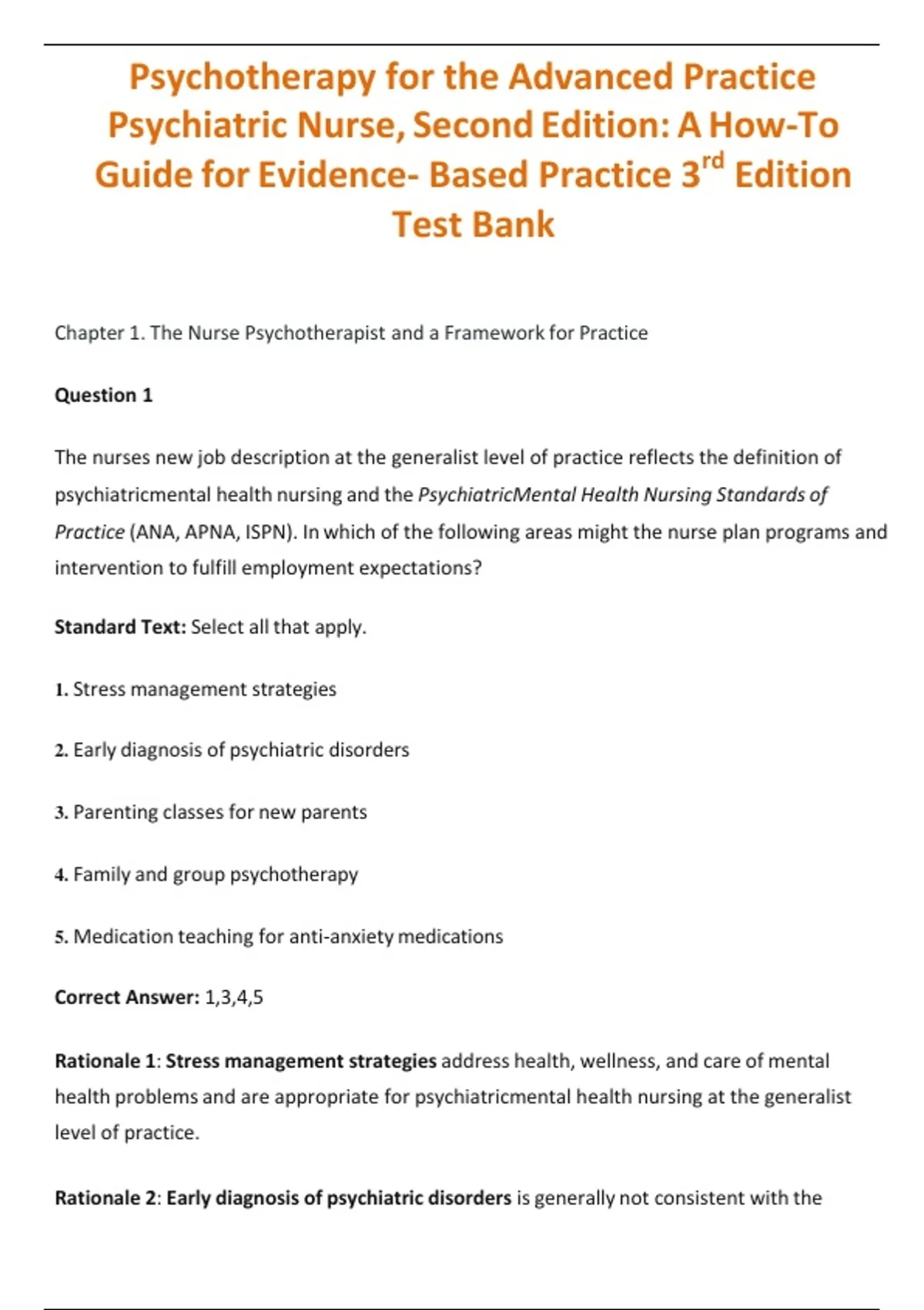 Rationale 1: The PsychiatricMental Health Nursing Standards of Practice delineates