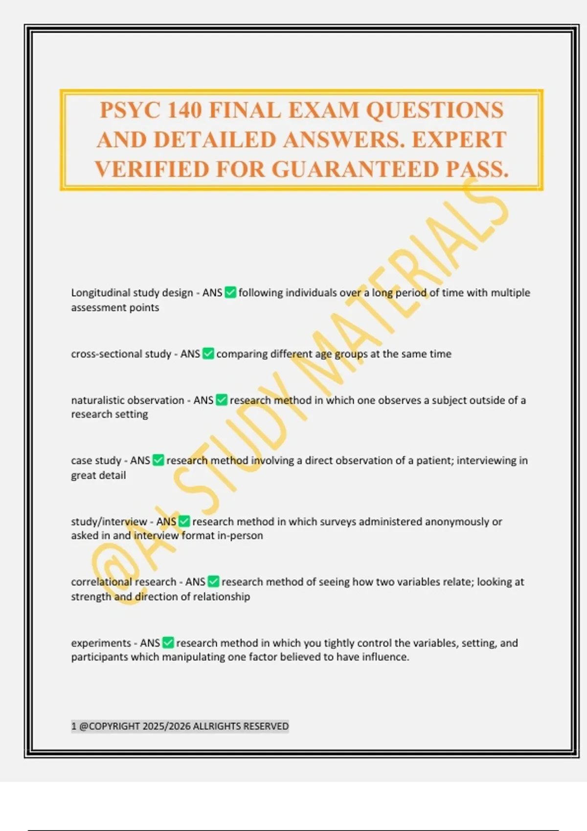 PSYC 140 FINAL EXAM QUESTIONS AND DETAILED ANSWERS. EXPERT VERIFIED FOR GUARANTEED PASS.