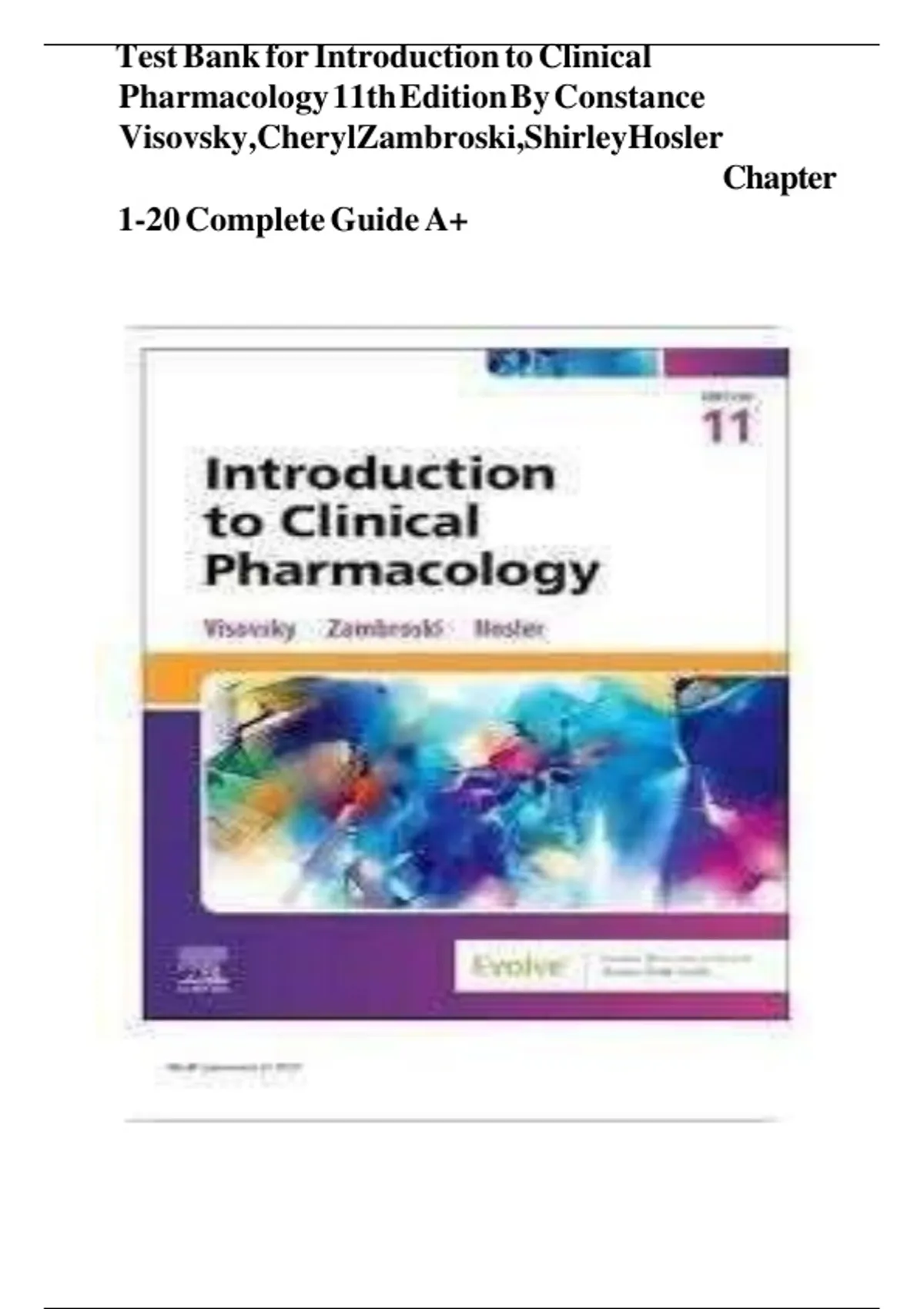 b Visovsky:Introduction to Clinical Pharmacology, 11th Edition b b b b b