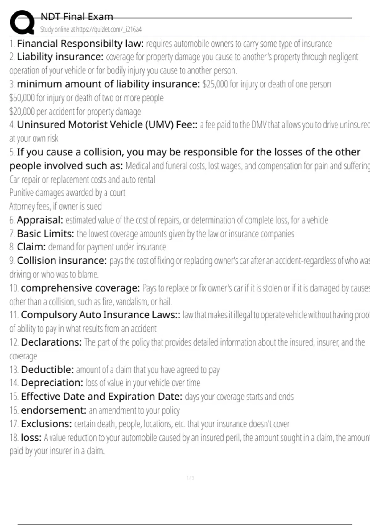 1. Financial Responsibilty law: requires automobile owners to carry some type of insurance