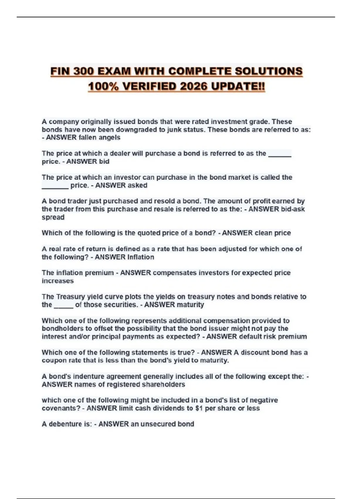 (FIN300) FIN 300 PACKAGED EXAMS 100% VERIFIED!!!