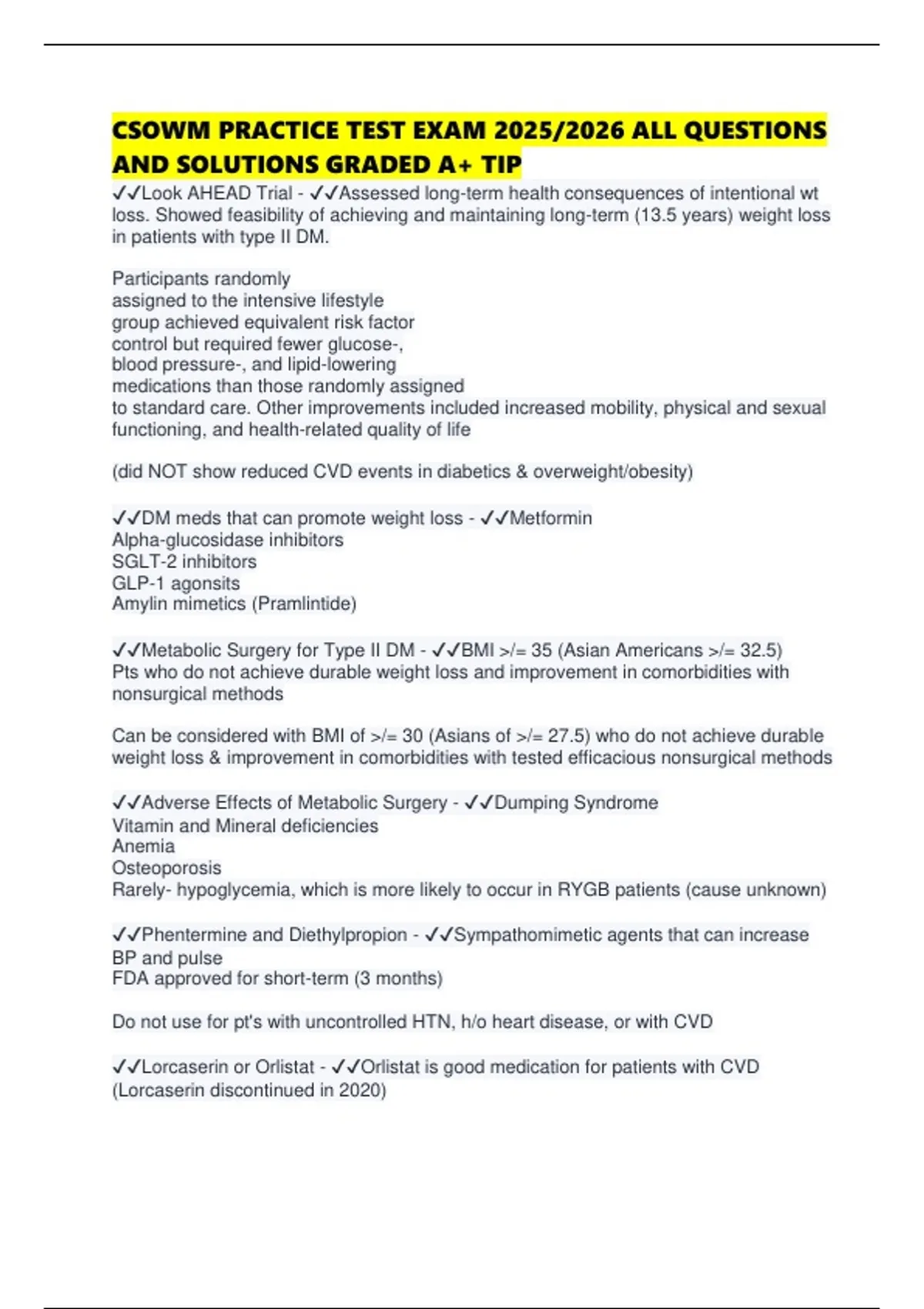CSOWM PRACTICE TEST EXAM 2025/2026 ALL QUESTIONS AND SOLUTIONS GRADED A+ TIP