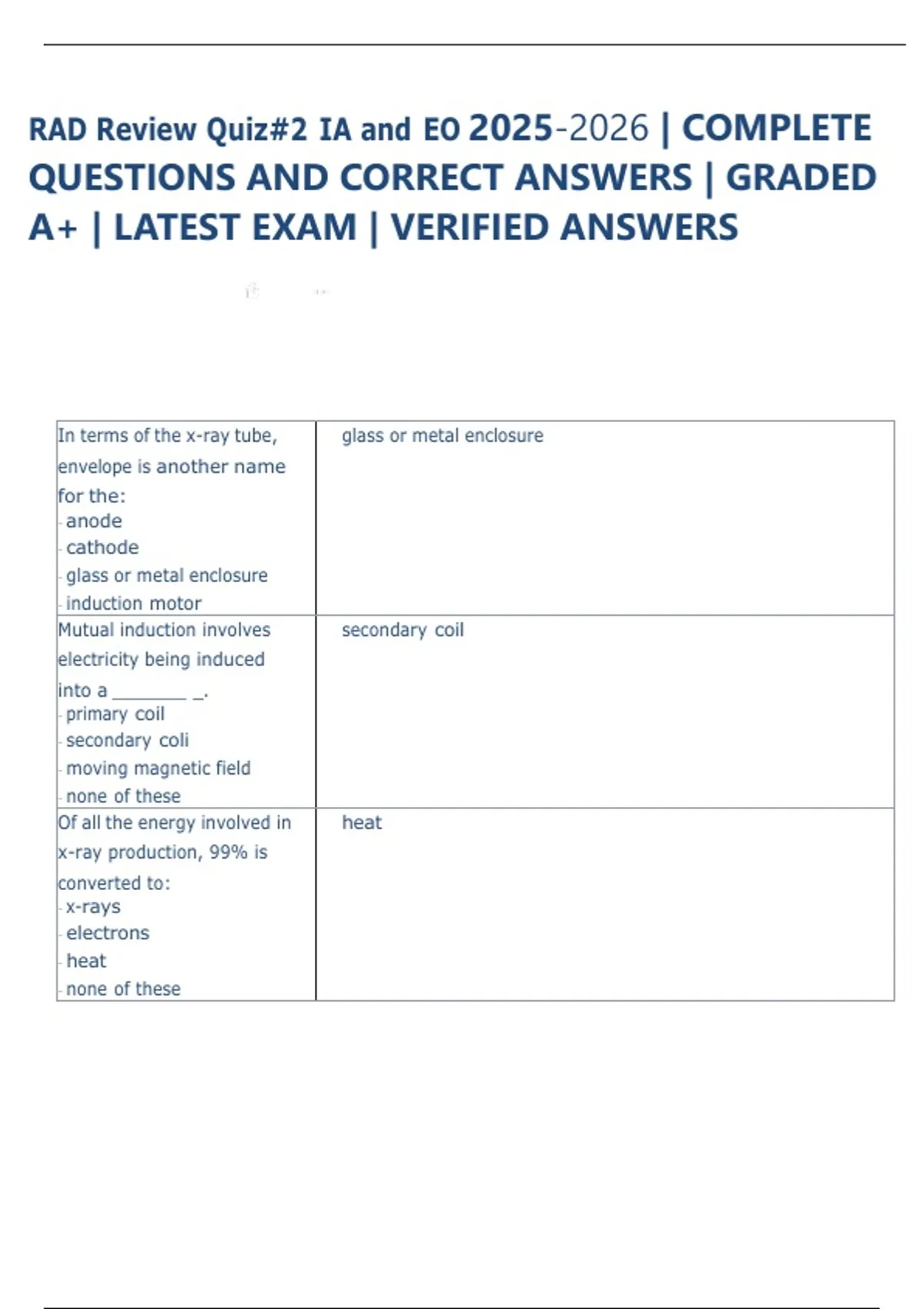 RAD Review Quiz#2 IA and EO | COMPLETE QUESTIONS AND CORRECT ANSWERS | GRADED A+ | LATEST EXAM | VERIFIED ANSWERS