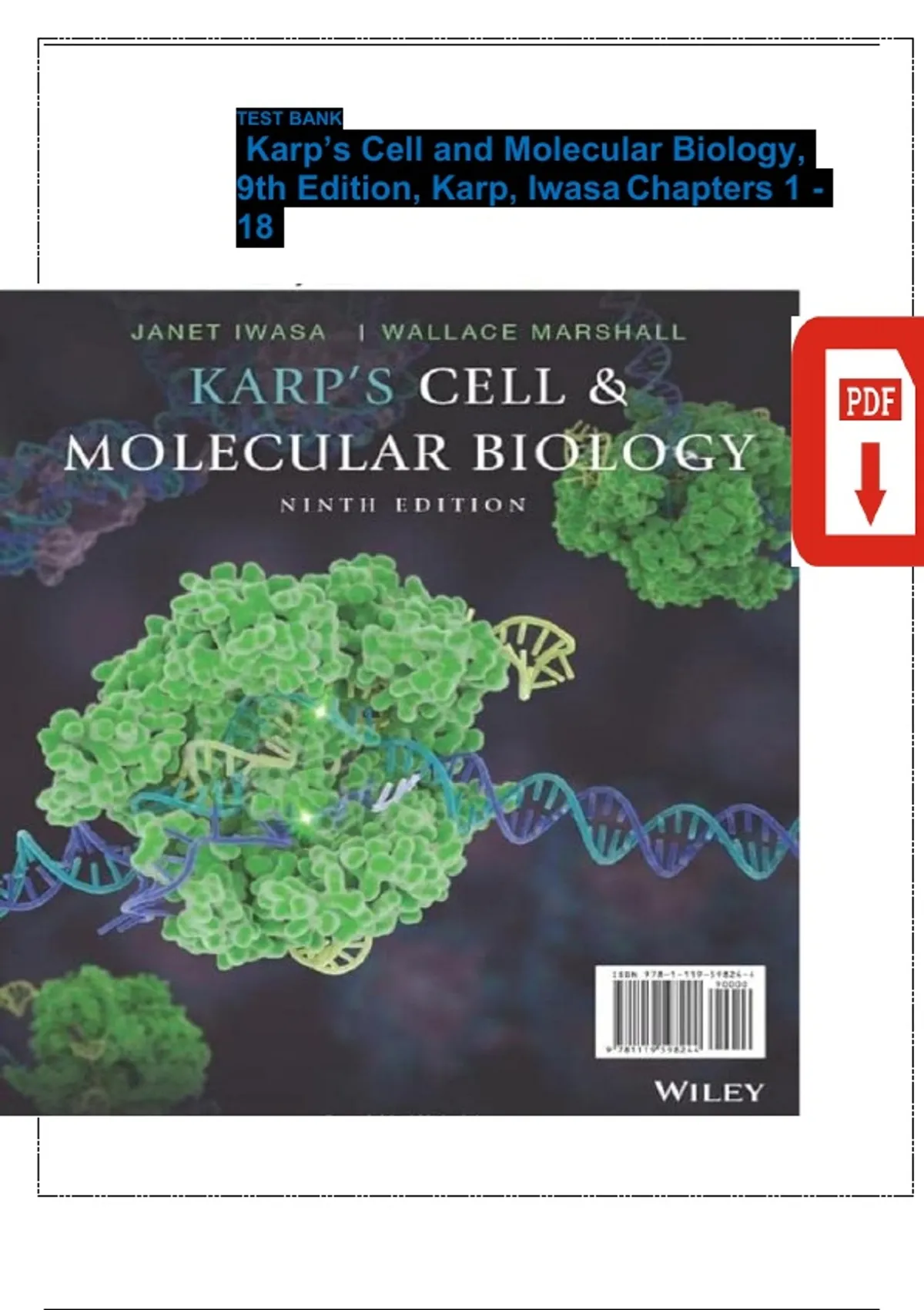 ,Test Bank for Karp’s Cell and Molecular Biology 9th Edition Karp