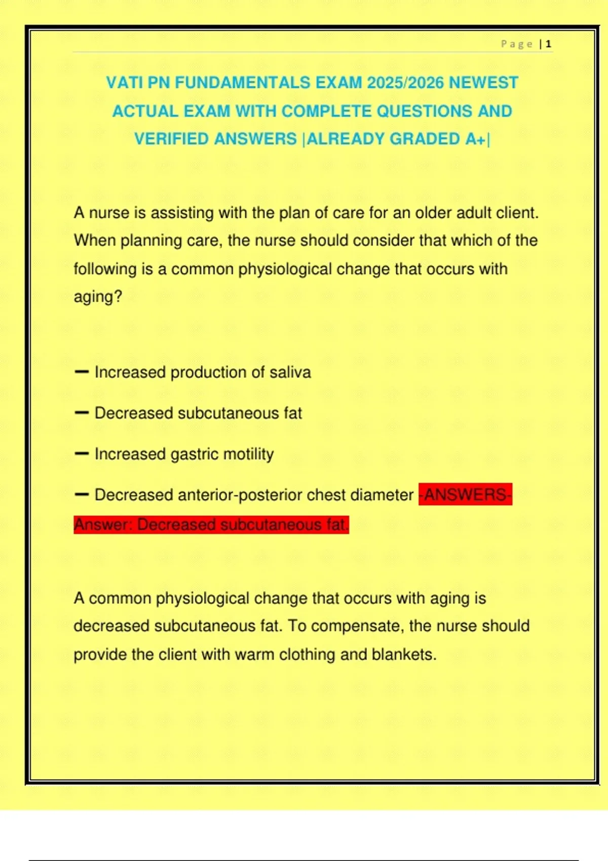 Looking for top-quality nursing exam resources? My comprehensive study materials on Stuvia are designed to help you succeed! With detailed explanations, practice questions, and expert insights, these exams are tailored to boost your understanding and performance. Invest in your future—purchase now and ace your nursing exams with confidence!