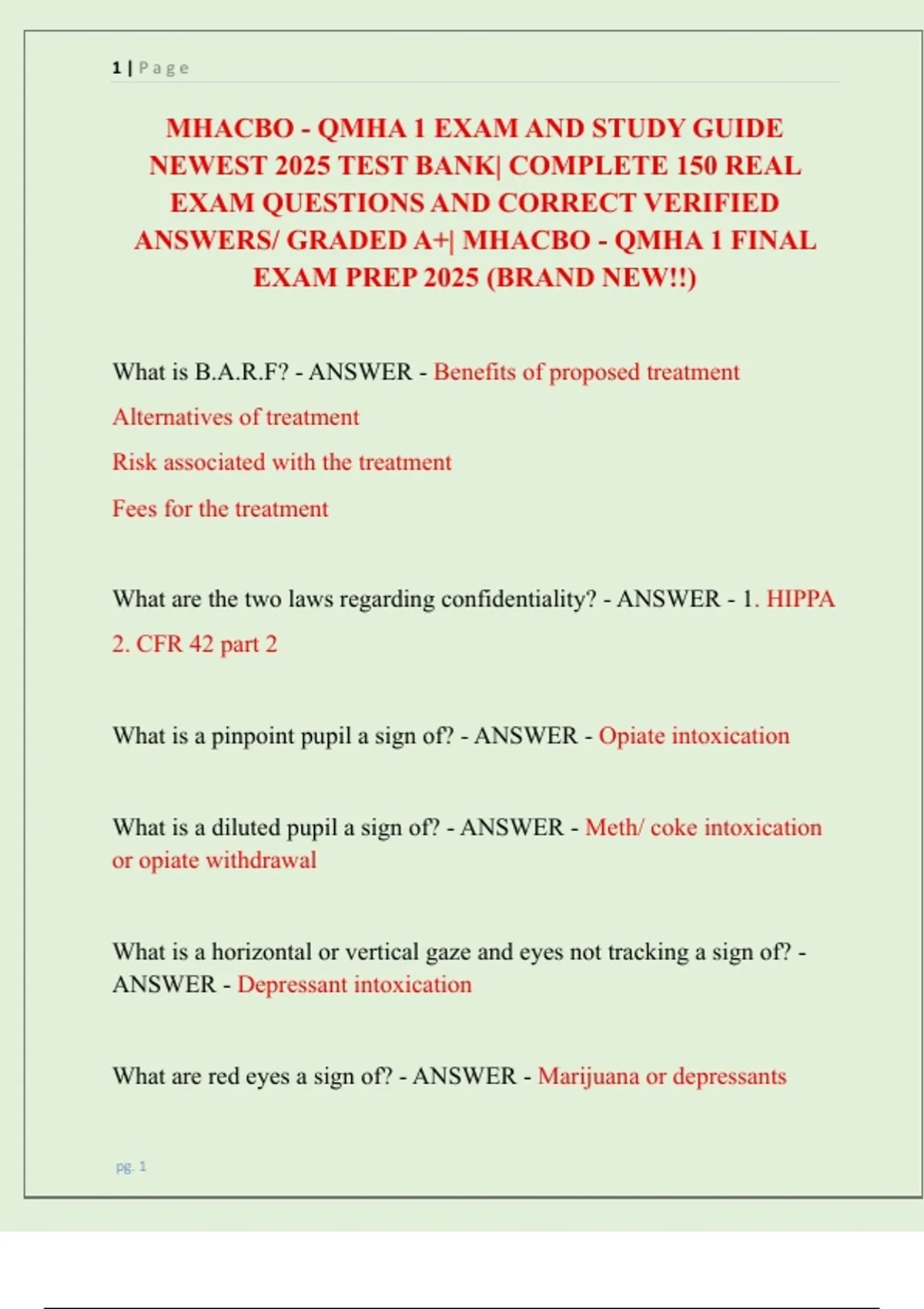 ANSWERS/ GRADED A+| MHACBO - QMHA 1 FINAL