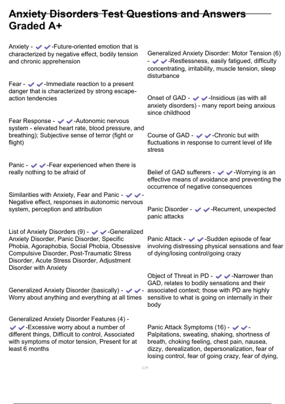 Generalized Anxiety Disorder Features (4) -