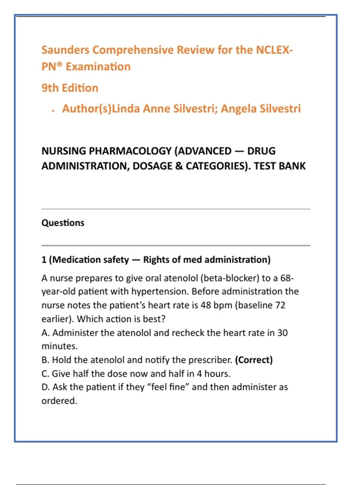 ADMINISTRATION, DOSAGE & CATEGORIES). TEST BANK