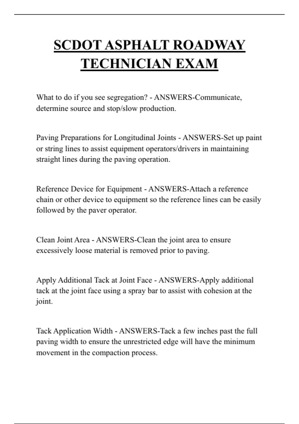 Paving Operations - ANSWERS-Ensure that the height of the loose