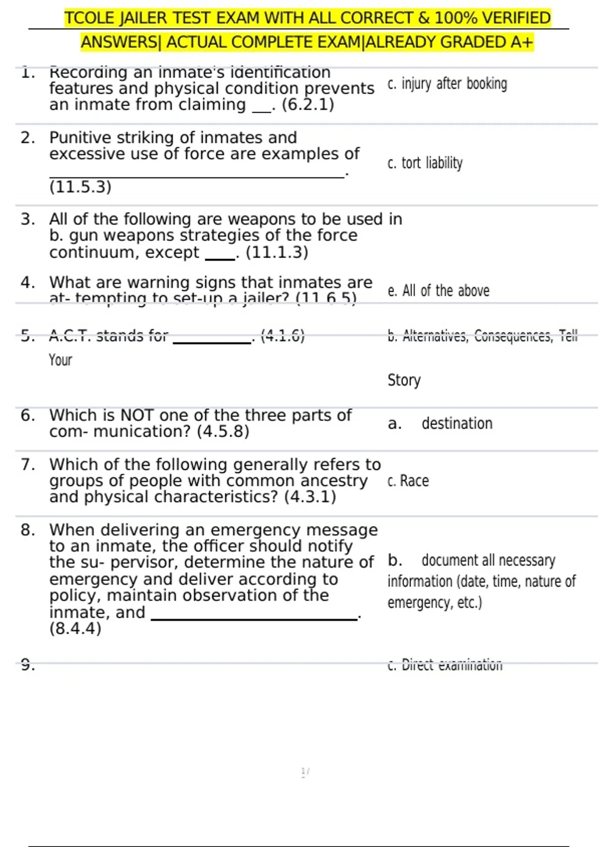 TCOLE JAILER TEST EXAM WITH ALL CORRECT & 100% VERIFIED