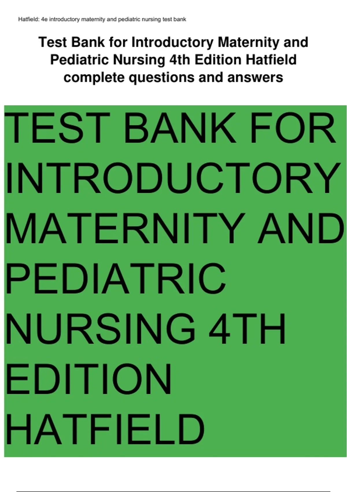 Hatfield: 4e introductory maternity and pediatric nursing test bank