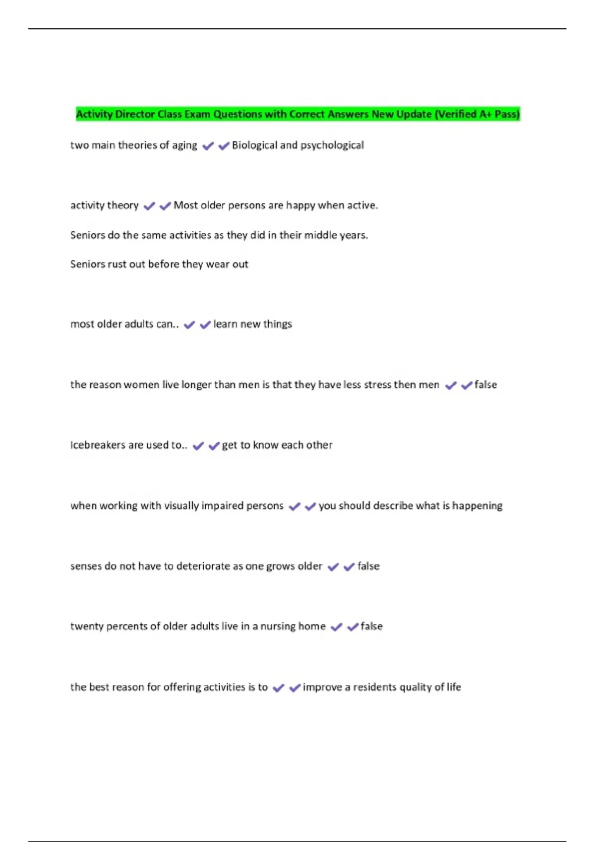 Activity Director Class Exam Questions with Correct Answers New Update (Verified A+ Pass)