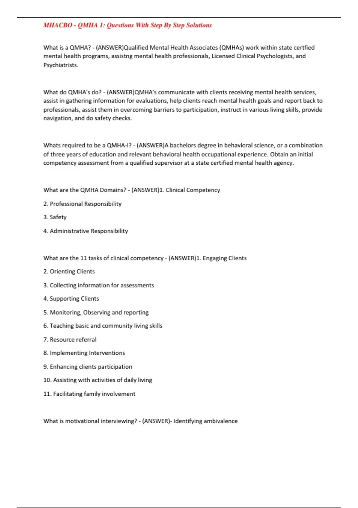 What are the QMHA Domains? - (ANSWER)1. Clinical Competency
