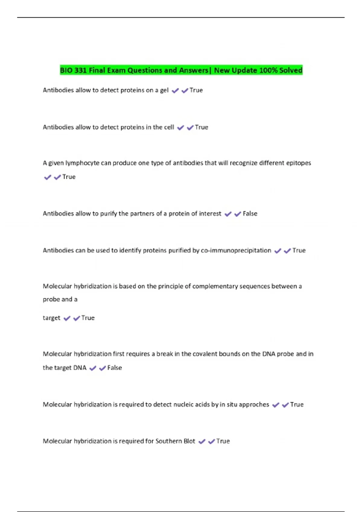BIO 331 Final Exam Questions and Answers| New Update 100% Solved