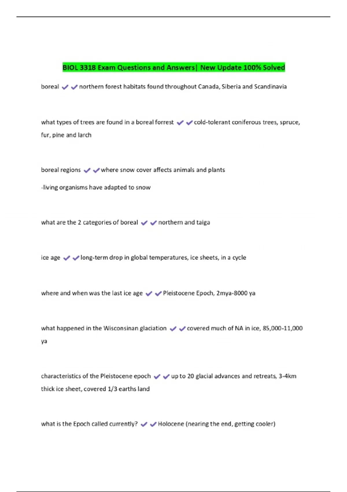 BIOL 3318 Exam Questions and Answers| New Update 100% Solved