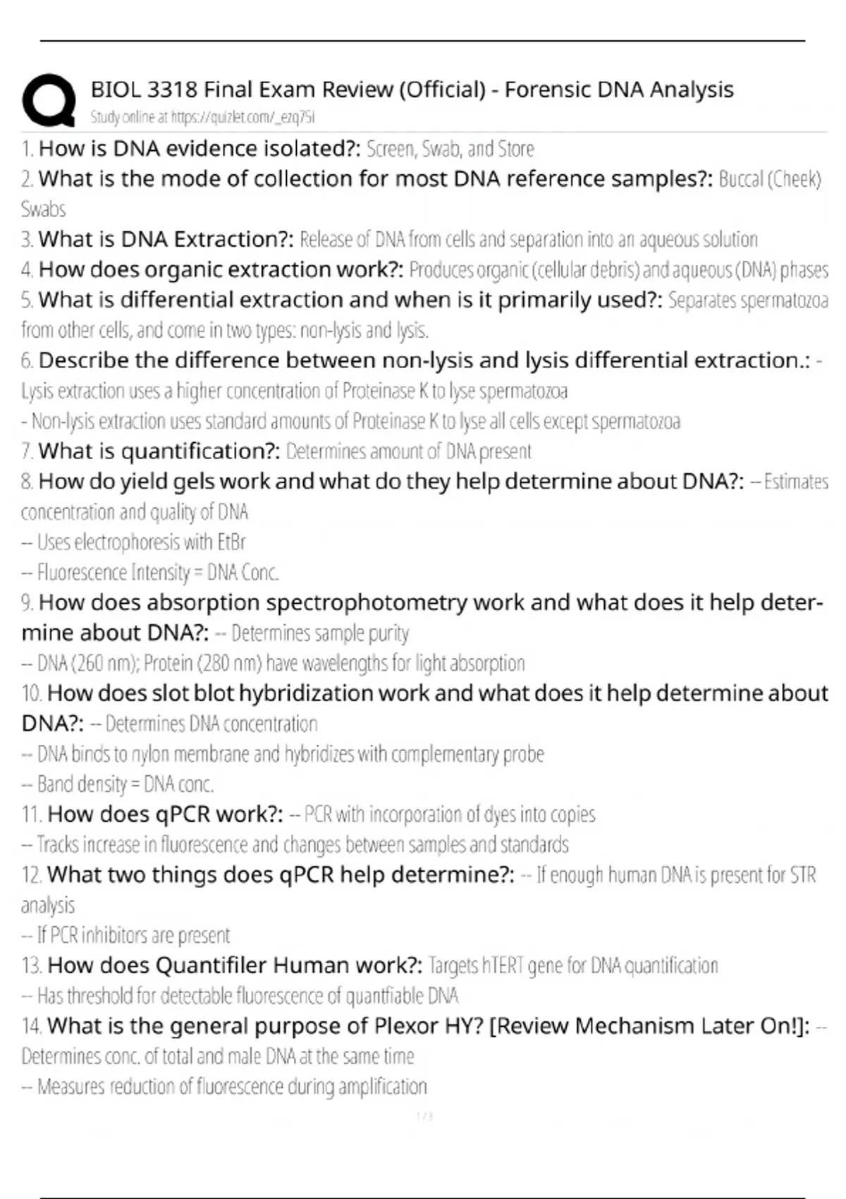 BIOL 3318 FINAL EXAM REVIEW (OFFICIAL)- Forensic DNA Analysis Questions and Answers