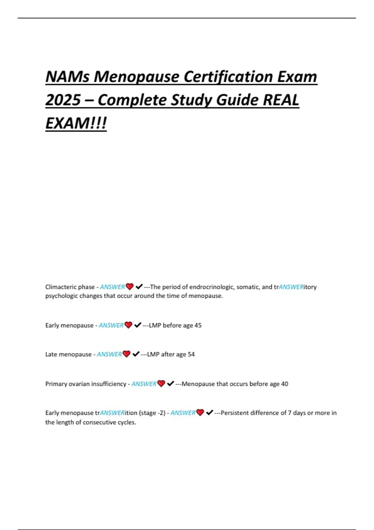 NAMS Menopause Certification Exam 2025 – Complete Study Guide (REAL EXAM)