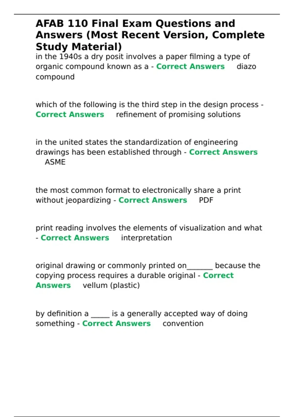 AFAB 110 Final Exam Questions and Answers (Most Recent Version, Complete Study Material)
