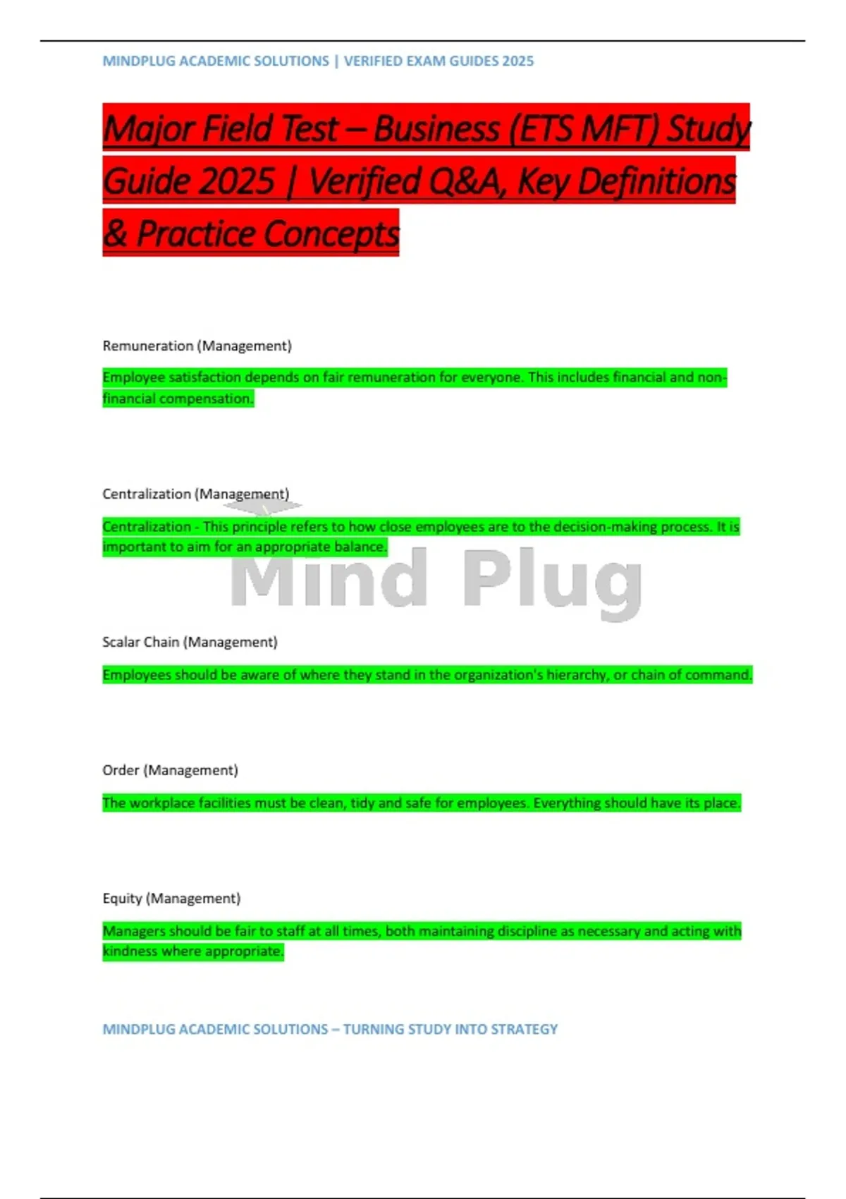 Major Field Test – Business (ETS MFT) Study Guide 2025 | Verified Q&A, Key Definitions & Practice Concepts