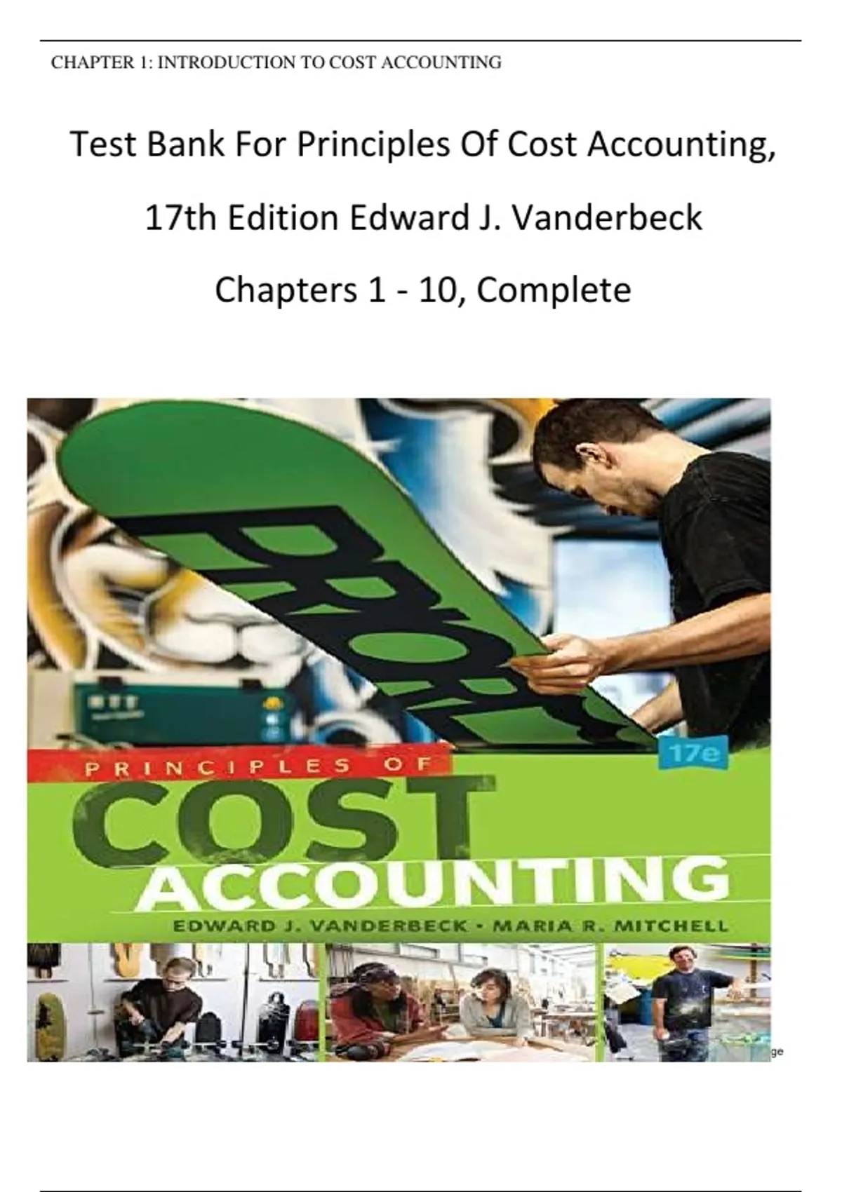 Test Bank For Principles Of Cost Accounting, 17th Edition Edward J. Vanderbeck Chapters 1 - 10, Complete