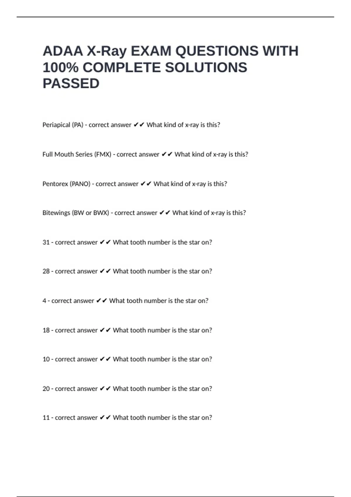 ADAA X-Ray EXAM QUESTIONS WITH 100% COMPLETE SOLUTIONS PASSED