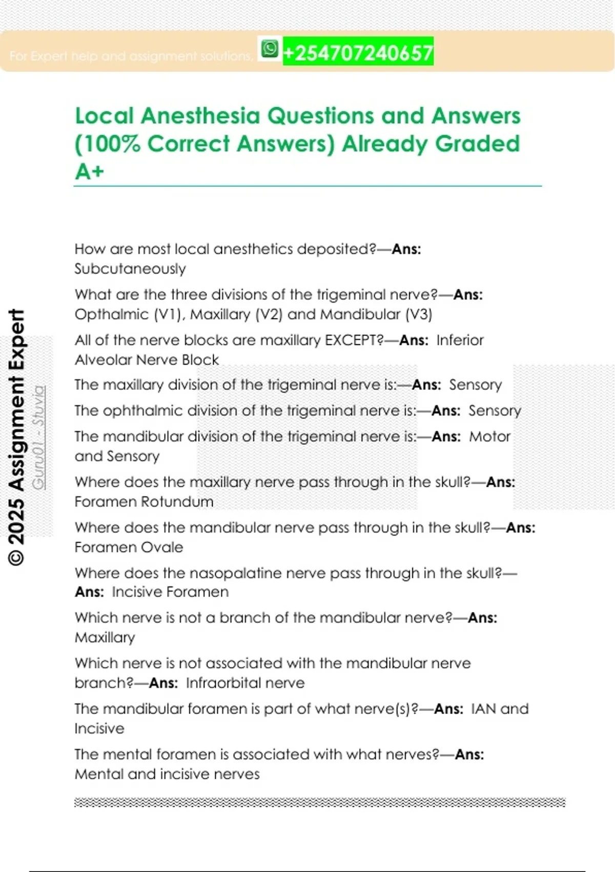Local Anesthesia Questions and Answers