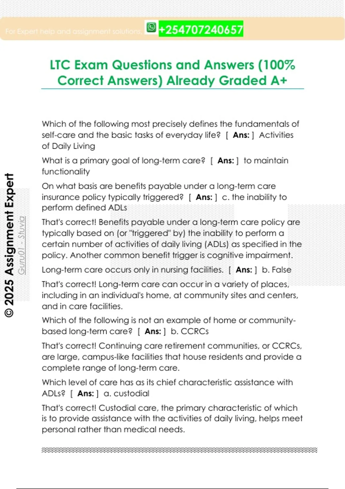 LTC Exam Questions and Answers (100% Correct Answers) Already Graded A+
