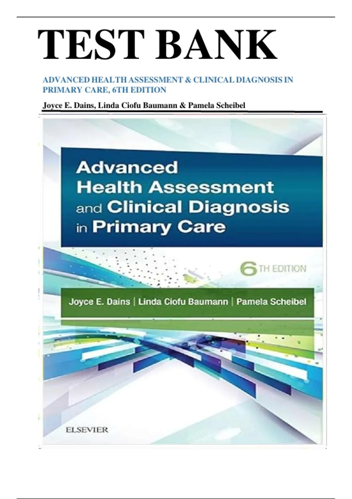 TEST BANK ADVANCED HEALTH ASSESSMENT & CLINICAL DIAGNOSIS IN PRIMARY CARE, 6TH EDITION Joyce E. Dains, Linda Ciofu Baumann & Pamela Scheibel