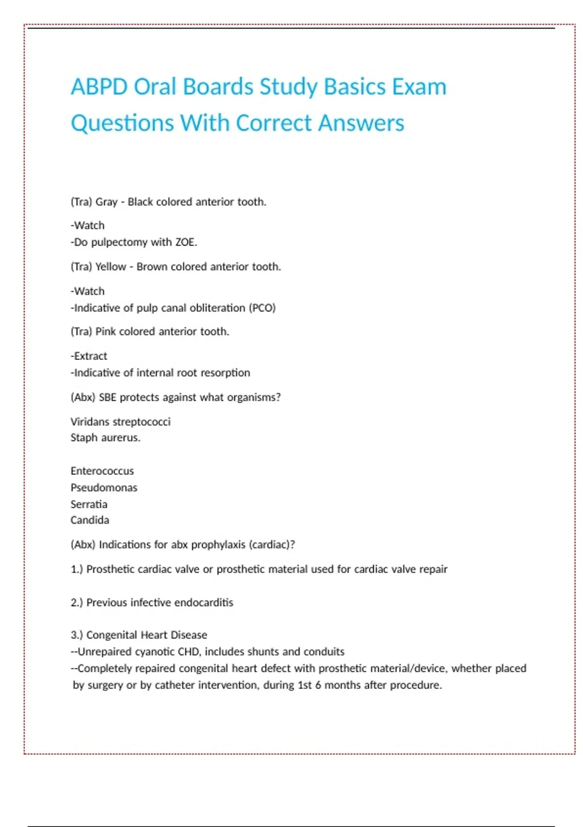 ABPD Oral Boards Study Basics Exam Questions With Correct Answers