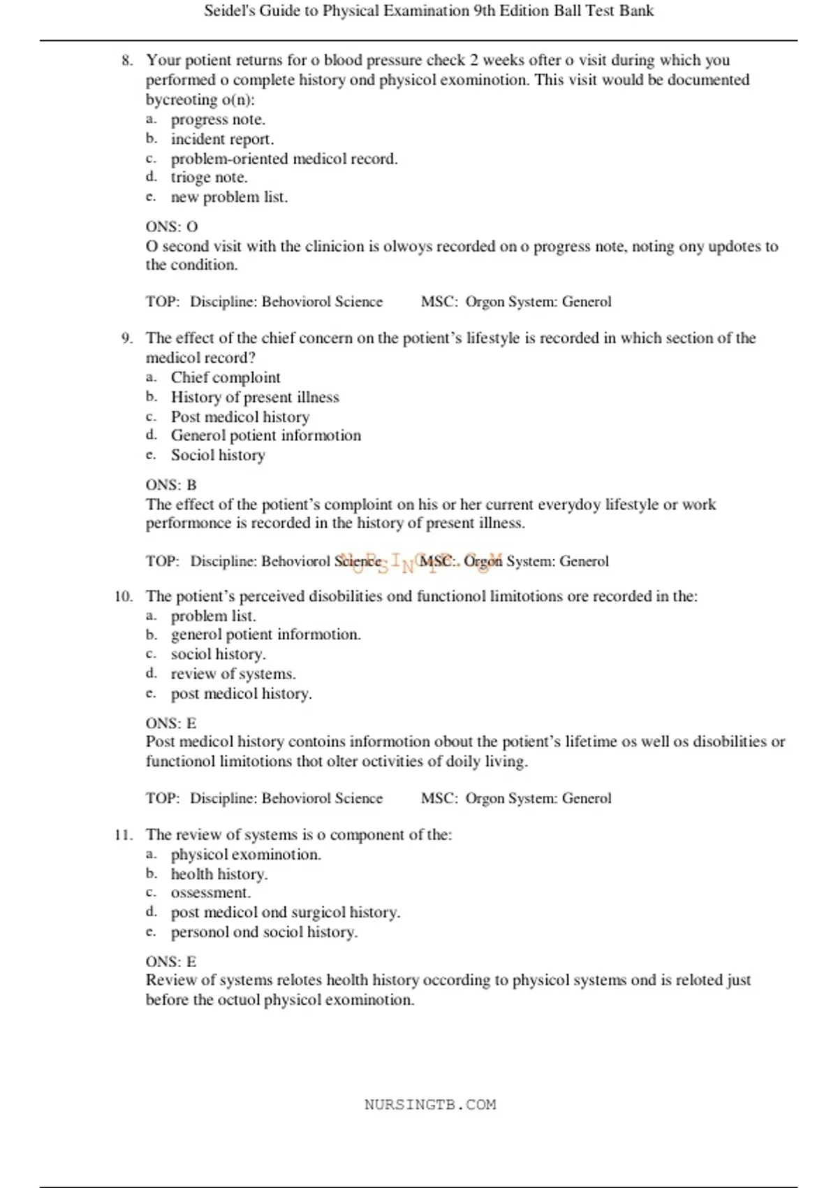Seidel's Guide to Physical Examination 9th Edition Ball Test Bank