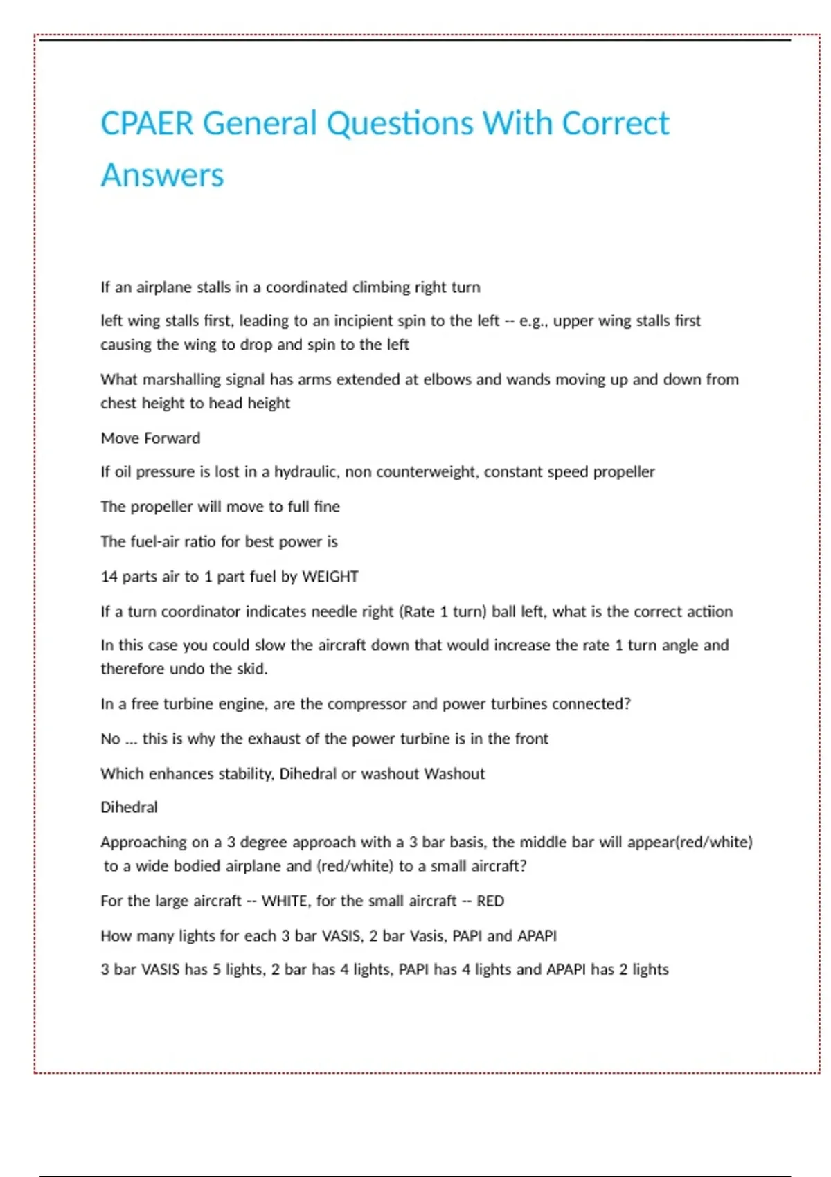 CPAER General Questions With Correct