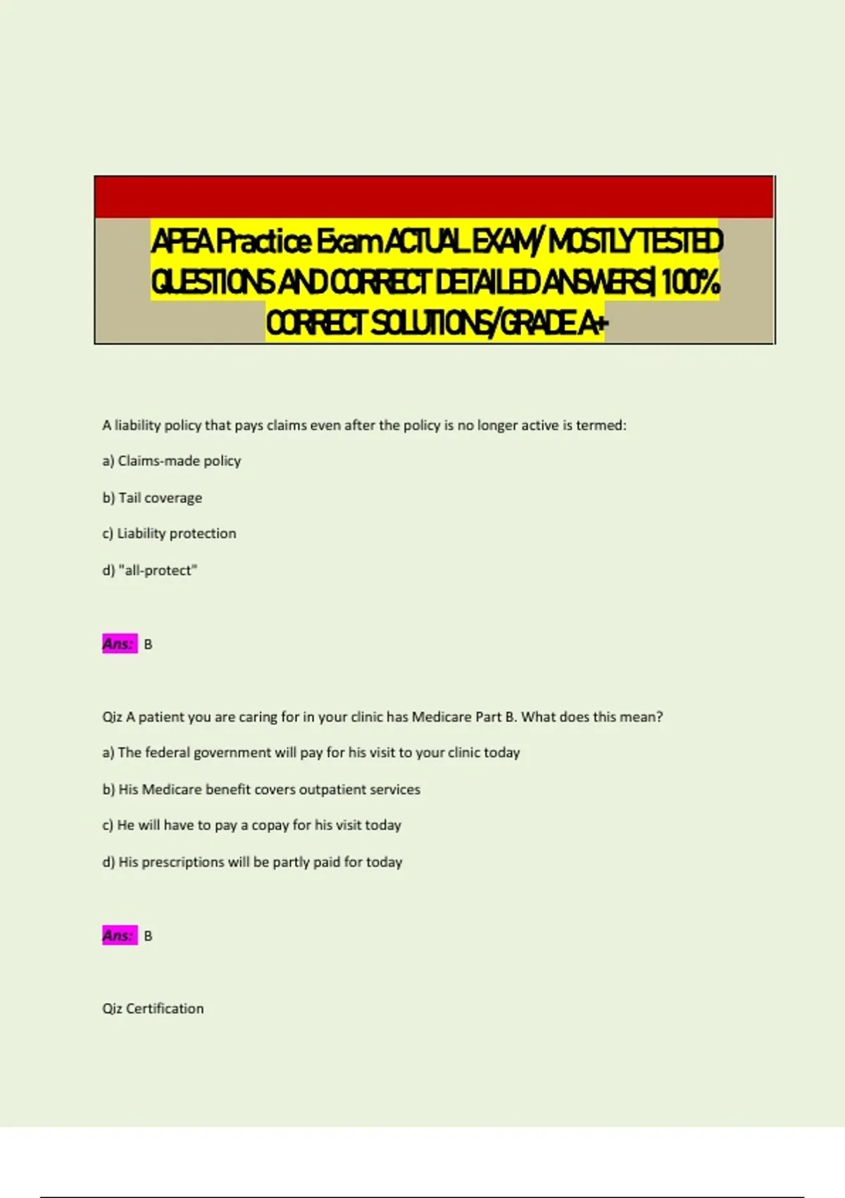 APEA Practice Exam ACTUAL EXAM/ MOSTLY TESTED QUESTIONS AND CORRECT DETAILED ANSWERS| 100% CORRECT SOLUTIONS/GRADE A+