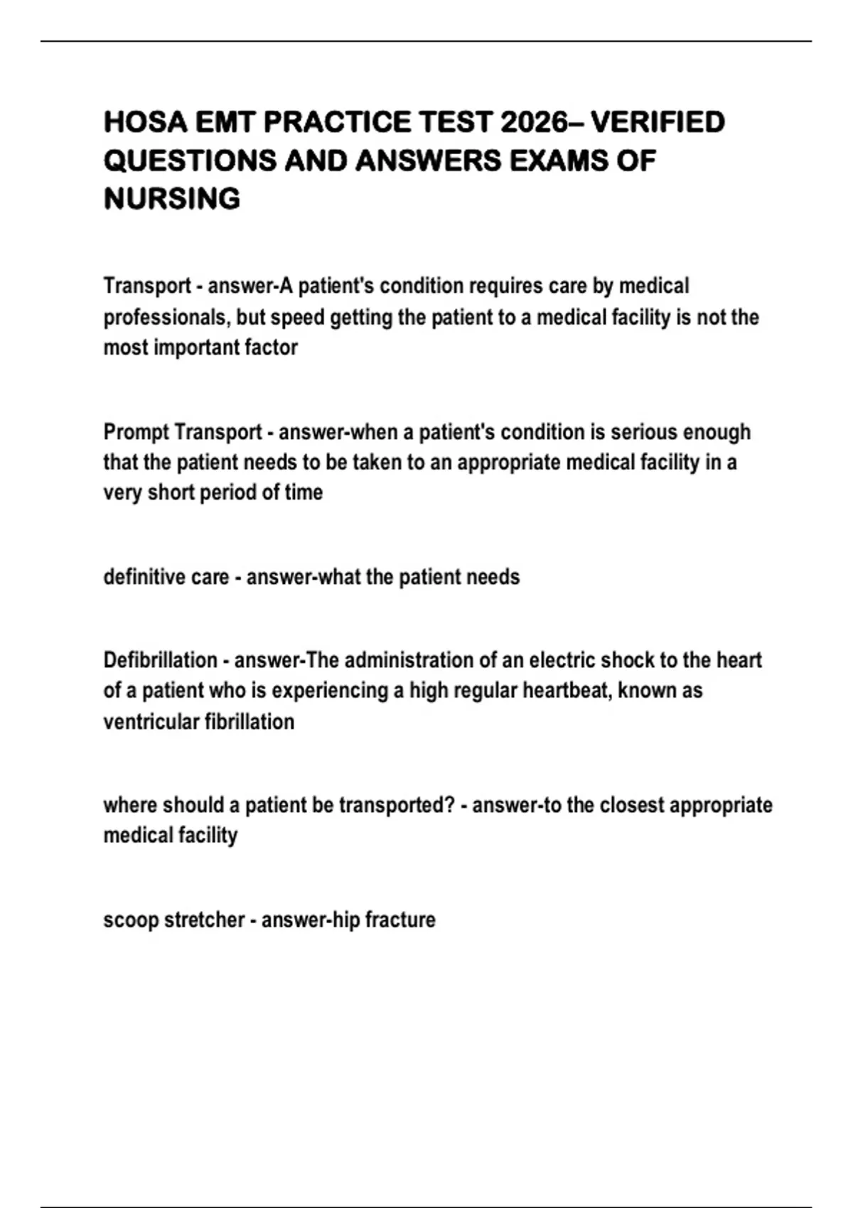 where should a patient be transported? - answer-to the closest appropriate