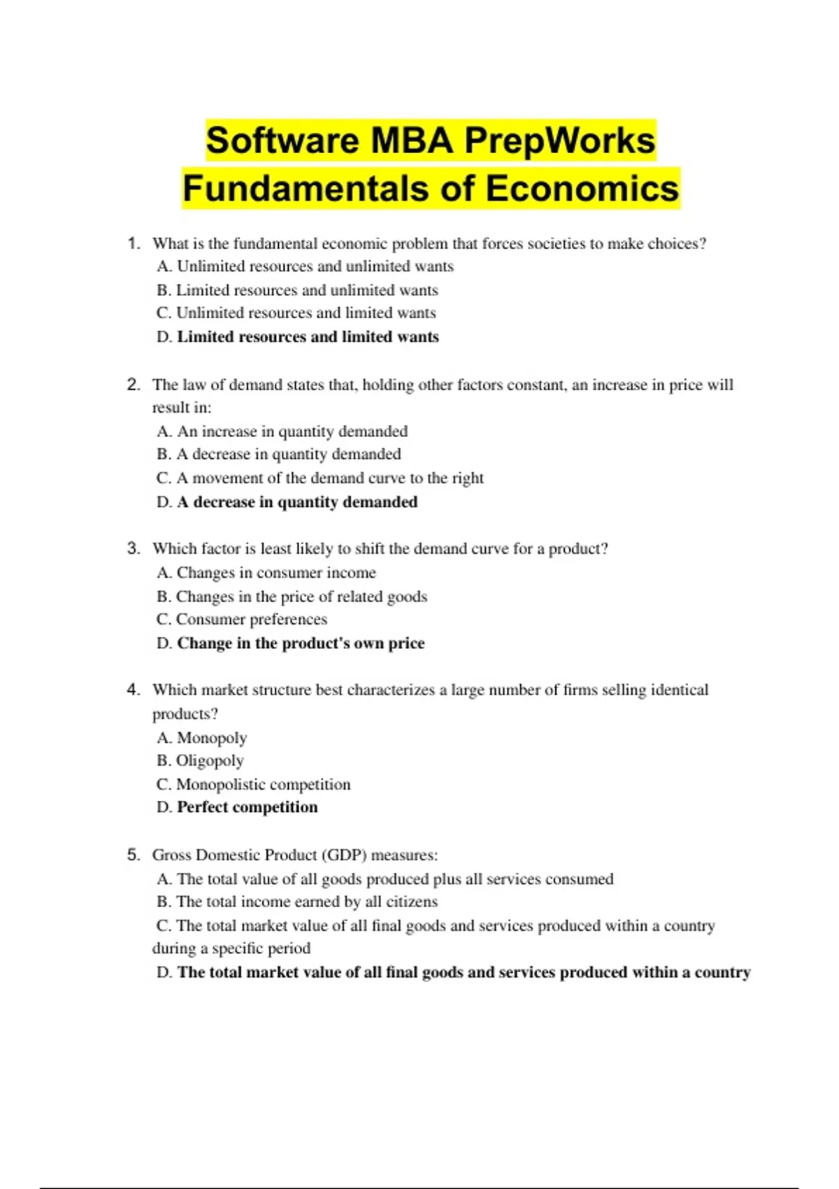 IVY Software MBA PrepWorks: Fundamentals of Economics Exam 2025/Software MBA PrepWorks: Fundamentals of Economics Exam 2025