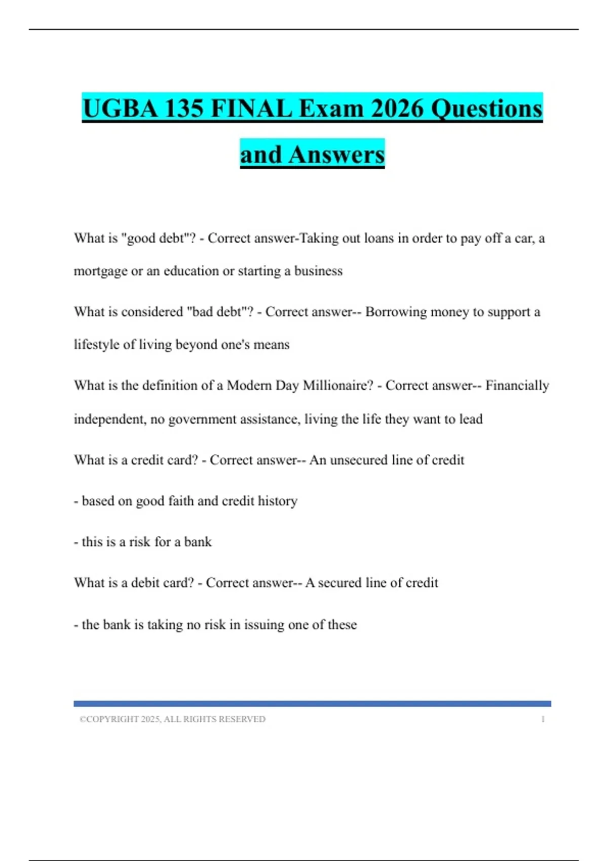 UGBA 135 FINAL Exam 2026 Questions