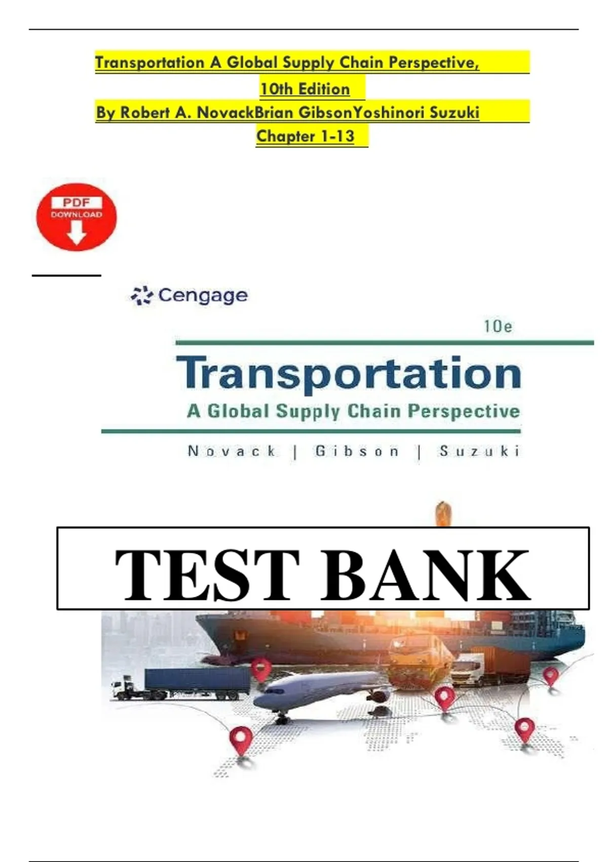 Test Bank for Transportation: A Global Supply Chain Perspective 10th Edition by Novack, Gibson & Suzuki (Chapters 1–13)