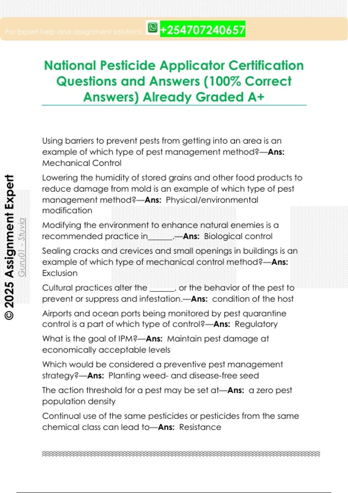 National Pesticide Applicator Certification Questions and Answers (100% Correct Answers) Already Graded A+