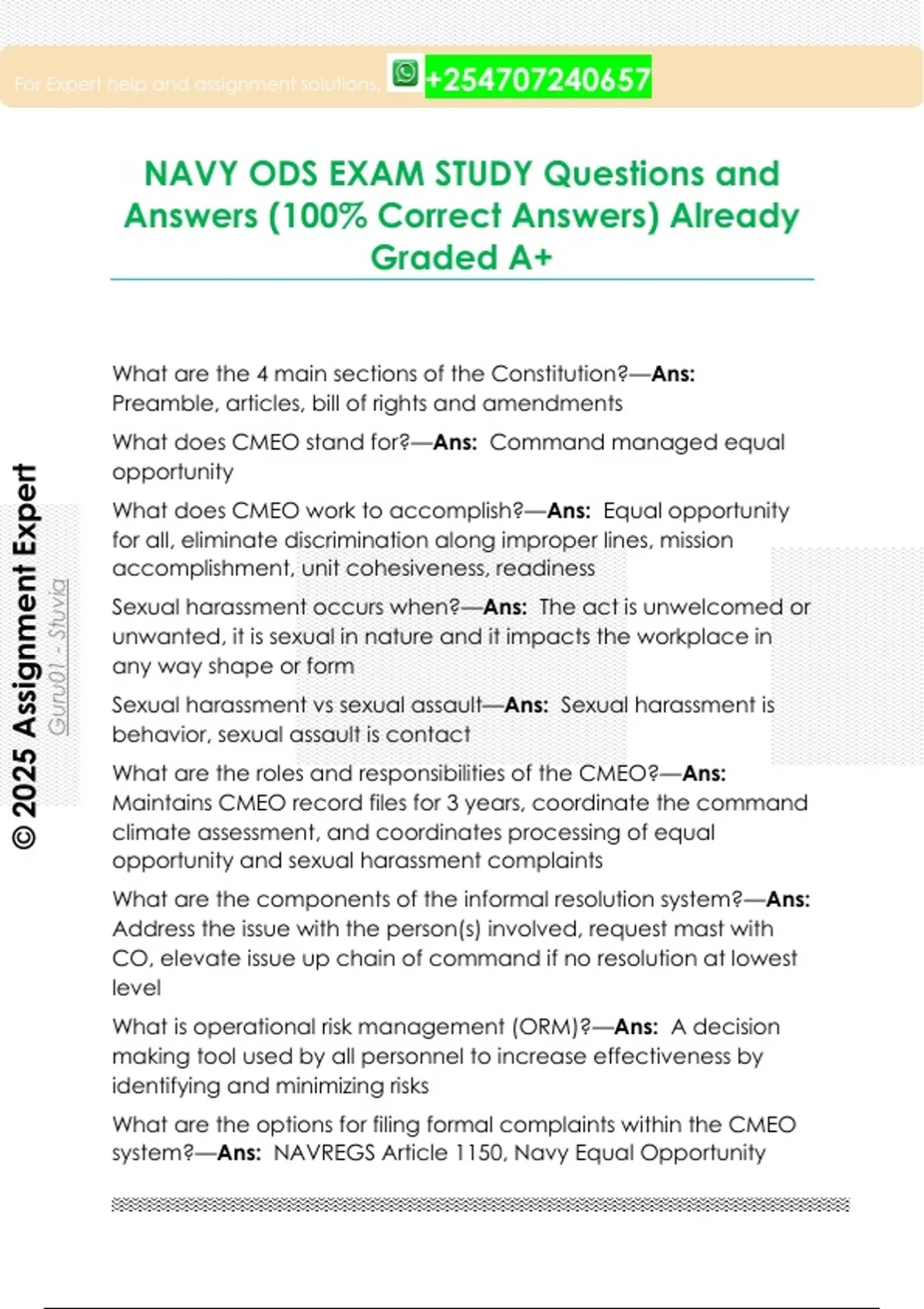 NAVY ODS EXAM STUDY Questions and Answers (100% Correct Answers) Already Graded A+