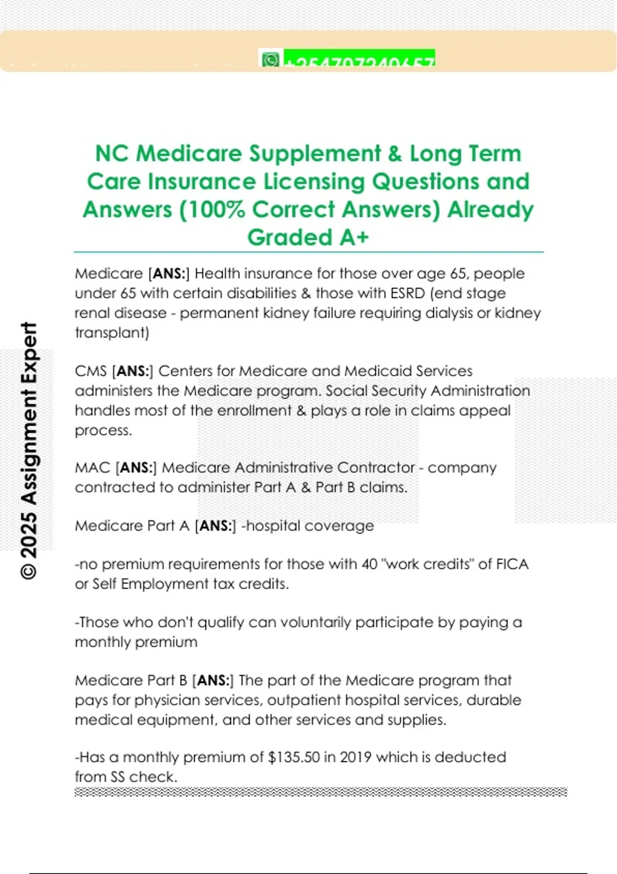 NC Medicare Supplement & Long Term Care Insurance Licensing Questions and Answers (100% Correct Answers) Already Graded A+