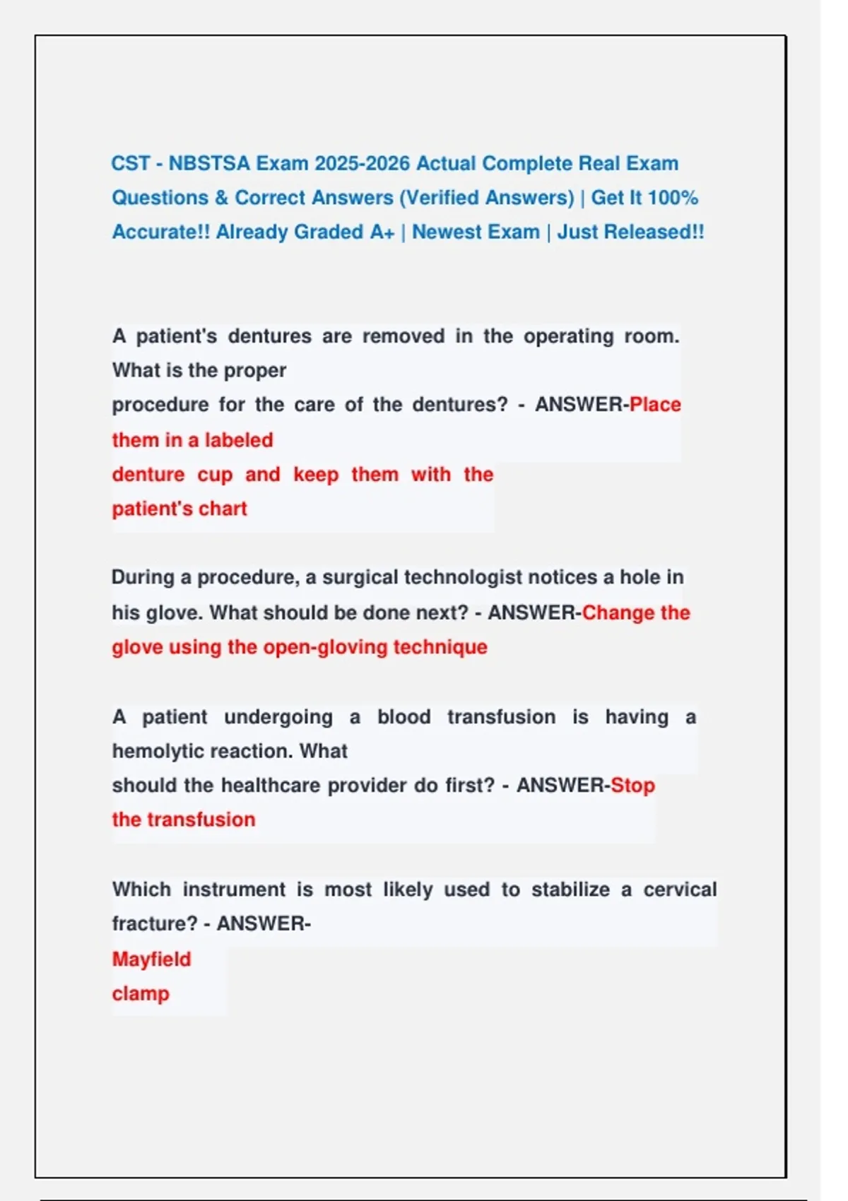 CST - NBSTSA Exam Actual Complete Real Exam Questions & Correct Answers (Verified Answers) | Get It 100% Accurate!! Already Graded A+ | Newest Exam | Just Released!! CST - NBSTSA Exam Actual Complete Real Exam Questions & Correct Answers (Verified Answers) | Get It 100% Accurate!! Already Graded A+ | Newest Exam | Just Released!! CST - NBSTSA Exam Actual Complete Real Exam Questions & Correct Answers (Verified Answers) | Get It 100% Accurate!! Already Graded A+ | Newest Exam | Just Released!! CST - NBSTSA Exam Actual Complete Real Exam Questions & Correct Answers (Verified Answers) | Get It 100% Accurate!! Already Graded A+ | Newest Exam | Just Released!! CST - NBSTSA Exam Actual Complete Real Exam Questions & Correct Answers (Verified Answers) | Get It 100% Accurate!! Already Graded A+ | Newest Exam | Just Released!! CST - NBSTSA Exam Actual Complete Real Exam Questions & Correct Answers (Verified Answers) | Get It 100% Accurate!! Already Graded A+ | Newest Exam | Just Released!! CST - NBSTSA Exam Actual Complete Real Exam Questions & Correct Answers (Verified Answers) | Get It 100% Accurate!! Already Graded A+ | Newest Exam | Just Released!!