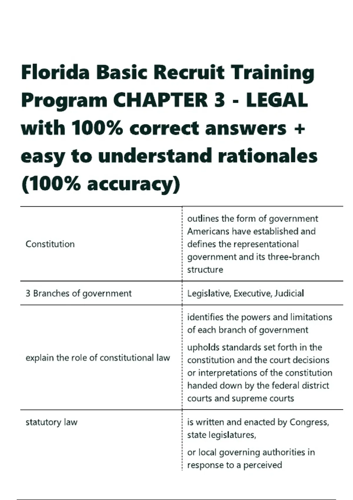 Florida Basic Recruit Training Program CHAPTER 3 - LEGAL with 100- correct answers